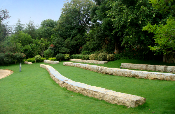 自然面花崗巖條石布置在草坪上,營造極具現(xiàn)代氣息的景致。