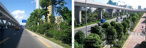 如今,開車行進(jìn)在這條道路上,干凈整潔的路面、開闊通透的視野、清新自然的景觀,給人帶來閑適、愜意的感覺?!耙匀藶楸?,尊重自然”的綠化理念,體現(xiàn)在景觀中的每個細(xì)節(jié);自然環(huán)境與城市環(huán)境的密切結(jié)合,使高架橋的道路通行功能與橋下中央綠化帶的生態(tài)功能有機融合。整條道路,不僅體顯出深圳這個濱海大都市獨有的景觀特色,更彰顯出這個城市的生機活力與熱情奔放。