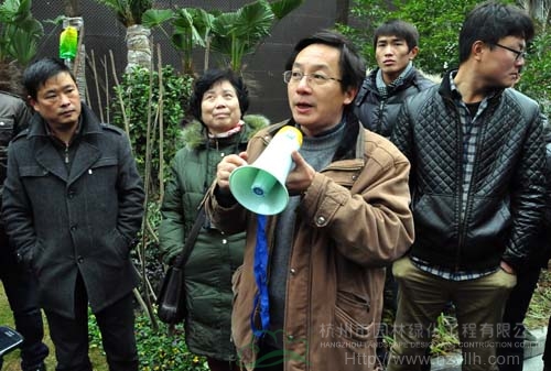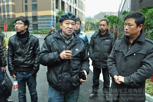 每到一個工程現(xiàn)場,工地負(fù)責(zé)人都先介紹工程的施工情況,然后,帶領(lǐng)大家進(jìn)行參觀,并隨時解答觀摩組一行提出的各種問題。每項(xiàng)工程觀摩結(jié)束的時候,三位專家都會集中點(diǎn)評,從苗木種植、植物搭配、水景營造、地形整理等各方面指出工程施工中存在的優(yōu)勢與不足,并提出需要改進(jìn)的地方。