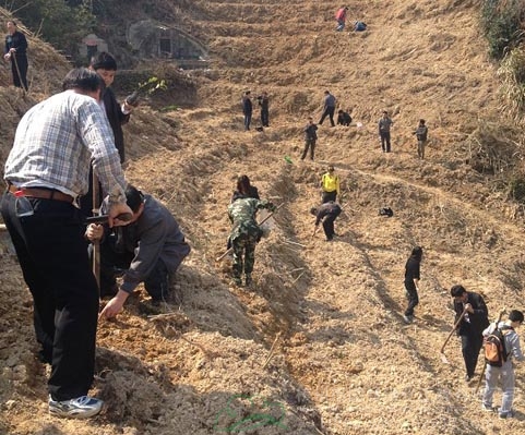 此次種植的是油茶小苗,為了提高樹苗的成活率,專門請來當?shù)剞r(nóng)民,詳細講解種植的步驟、間距等種植要點及注意事項。隨后,大家兩人一組,興致高昂地開始了種樹,挖穴、種苗、填土……經(jīng)過一個小時的緊張勞動,500多株油茶樹就種好了。