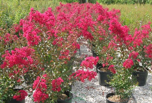 “紅寶石”紫薇:株形矮小,萌蘗性強(qiáng),耐修剪,花期長,花形緊湊,花色深似寶石,既可作盆栽觀賞,又可作花境點(diǎn)綴。