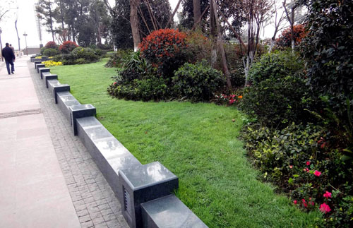 據(jù)李壽仁介紹,保留下來的大樹主要有兩種處理手法:像天竺桂、黃葛樹等幾十年的老樹,在周圍搭建木質(zhì)平臺,既可以保護(hù)大樹,又可供游人休息;一些香樟、桂花、銀杏等,則用森林綠整石圍邊,搭配草皮、三色堇、球類、日本紅楓等植物,采用花境的布置手法,建成一個(gè)個(gè)面積大小不一的花壇,營造出四時(shí)風(fēng)光各不同的江南園林意境。而平滑、細(xì)膩的森林綠整石,既是景觀的一部分,又是漂亮的坐凳,兼顧了景觀與實(shí)用的功能。