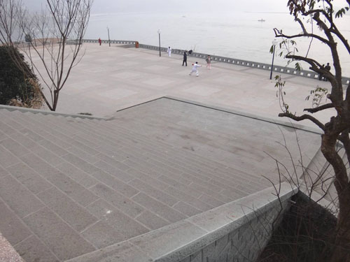 館驛嘴廣場不僅要成為城市的一處標(biāo)志性景觀,更要能經(jīng)得起洪水的考驗(yàn),這就對廣場的功能和鋪裝材料提出了更高的要求。