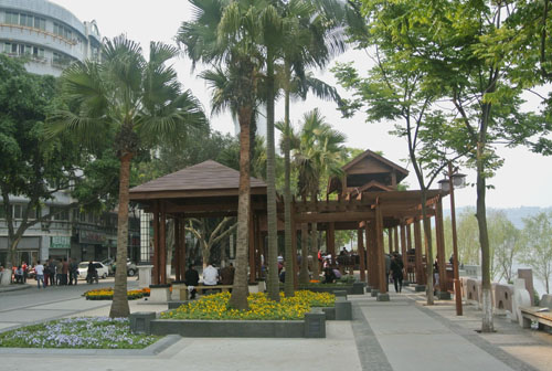 經(jīng)過近半年的不懈努力,如今,這里的景觀效果已初見成效,生態(tài)自然的園林美景,濃郁厚重的人文氣息,使這里再次成為酒城瀘州的一處標(biāo)志性景觀,成為廣大市民的一處休閑樂園。站在高處的建筑上往下看,新建成的館驛嘴廣場猶如一艘動(dòng)感十足的航船,迎風(fēng)破浪,向著江心直行而去;而廣場上無數(shù)的游人,則如船上的乘客,悠閑愜意地欣賞著江中的美景。