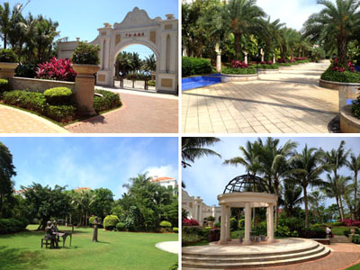 走進(jìn)森海灣,紅瓦白墻、單邊回廊的建筑設(shè)計(jì),與郁郁蔥蔥的植物一起,構(gòu)建了一個(gè)海灣童話城堡世界,營(yíng)造出閑適、愜意、溫馨、雅致的居住氛圍。據(jù)項(xiàng)目負(fù)責(zé)人葉偉華介紹,作為一個(gè)高端住宅區(qū),森海灣對(duì)園林景觀的要求比較高,小區(qū)以中軸景觀帶為主景,設(shè)有游泳池、休閑草坪、疊水等,種植大王椰、霸王棕、鳳凰木、重陽(yáng)木、中東海棗、老人葵等大樹(shù)襯托整個(gè)中央主景。各處庭院則選擇豐富多彩的樹(shù)種,采用不同的手法布局與建筑完美融合,透露出精細(xì)的西班牙情調(diào),用簡(jiǎn)單詮釋浪漫,點(diǎn)綴悠閑的度假生活,使整個(gè)園林充盈著濃郁的熱帶風(fēng)情。