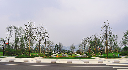 云龍湖珠山景區(qū)景觀綠化工程總占地面積80公頃,全長3.6公里,施工面積63萬余平米,施工內(nèi)容主要包括土方造型、綠化種植、廣場園路鋪裝、道教主題廣場、沉水廊道、木棧道、景石營造、古建筑等。設計主題突出"徐州新天地和珠山新印象",總體風格體現(xiàn)"人文、生態(tài)、活力",共分為濱湖主入口廣場區(qū)、水杉林游覽區(qū)、濱湖休閑景觀區(qū)、水生植物游覽區(qū)等9個功能區(qū)及觀魚沉水廊道、道教主題廣場、水杉林大道、沿湖木質(zhì)棧道等多個景觀節(jié)點。工程施工共分三個標段,其中,杭州市園林綠化股份有限公司承建的是二標段。