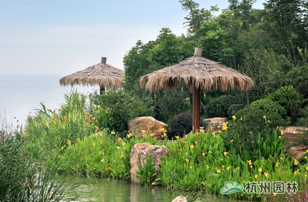 以人為本,尊重自然,貫穿于設(shè)計(jì)到施工的各個(gè)環(huán)節(jié)。該項(xiàng)目緊臨東太湖,為了最大限度地保護(hù)太湖水域環(huán)境,各個(gè)施工環(huán)節(jié)中,因地制宜,因材施用,在駁岸處理中,通過(guò)草坪入水、水生植物種植、景石運(yùn)用等方法,在充分保護(hù)原有湖岸的基礎(chǔ)上,加強(qiáng)對(duì)湖水水質(zhì)的凈化,營(yíng)造出生態(tài)、自然的湖岸景觀,成為項(xiàng)目中的一景。此外,種植的植物,大量選用當(dāng)?shù)剜l(xiāng)土樹(shù)種,既營(yíng)造出濃郁的景觀特色,又有利于提高植物的成活率,減少后期的養(yǎng)護(hù)費(fèi)用,有效節(jié)約了工程成本。