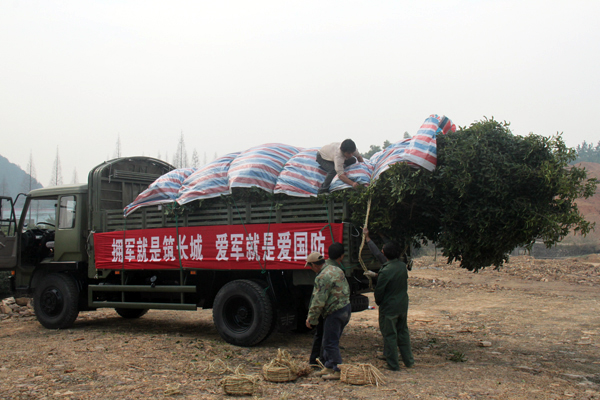為給官兵營(yíng)建綠色的生活環(huán)境,杭州市政府從杭州市園林綠化工程有限公司位于臨安泉口的苗木基地選購(gòu)了一批桂花樹(shù)送給駐舟山部隊(duì)。據(jù)悉,此次選購(gòu)的桂花為蓬徑1.8米至3.5米的大苗,品種有四季桂、硬葉丹桂、波葉金桂等。同時(shí),該公司還派出了專業(yè)技術(shù)人員前往舟山指導(dǎo)種植工作。