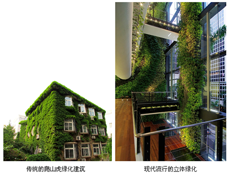 立體綠化的主要形式為立體綠化墻,也稱植物墻或綠墻,是近年來興起于法國的一項用于墻面垂直綠化的新技術(shù)。過去用于垂直綠化的植物只有大家熟悉的爬山虎、紫藤等,但是這些植物缺乏常綠、觀花、觀果的觀賞效應(yīng),而且還要引導(dǎo)植物攀爬墻面,搭棚架、立柱,幾年以后才成氣候,比較麻煩。而如今的立體綠化墻是一個小型生態(tài)系統(tǒng),它可以根據(jù)客戶需要,結(jié)合氣候、溫度、濕度、色彩等綜合條件,選配四季長綠或色彩豐富的植物,隨時在人們想要的地方構(gòu)建出一個貼近自然又超脫自然的生活環(huán)境。當(dāng)在屋頂、墻面等覆蓋了適當(dāng)?shù)闹脖缓?,大量的熱氣和紫外線都會被植物抵擋,這層植物墻能夠使其表層溫度降低15°C左右,夏天基本可以不需要依賴空調(diào)。而且植物墻能消除墻面對陽光的反射,使走在大街上的人們不受陽光干擾,感受到?jīng)鏊耐瑫r也避免眼睛被強光照射。到了冬天,植物墻又具有保溫的功能,這種方式非常低碳節(jié)能,并且更健康。
