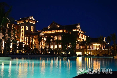 工程景觀面積約14萬平方米,施工范圍包括酒店西面軟、硬景工程,即沙灘泳池區(qū)、中軸景觀、南面花園區(qū)、別墅區(qū)景觀、客房宅間景觀、水上樂園、沖浪池、兒童樂園、木棧道景觀、景觀燈具和景觀小品等。