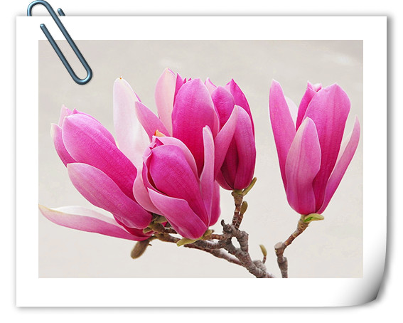 不同顏色的玉蘭中,開(kāi)得最早的,當(dāng)數(shù)白玉蘭,那純正的白色花朵,纖塵不染,清雅秀麗中有著瓷器的溫潤(rùn)質(zhì)感,仿佛一件件潔白的工藝品,很想將它捧在手心,慢慢品味它的精致與美麗。紫色的玉蘭花,則有著淡淡的華貴氣質(zhì),那含苞欲放的花朵,酷似一枝枝飽蘸紫色墨水的毛筆,揮灑自如間,描繪出獨(dú)屬于春天的明艷風(fēng)情。黃色的玉蘭花,呈現(xiàn)出淡淡的鵝黃色,柔柔的,嫩嫩的,帶著清新寧?kù)o的氣息,有著超凡脫俗的美。不同顏色的玉蘭花有著不同的美麗,但每一種都那么迷人,充滿(mǎn)靈動(dòng)的氣息。