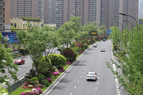 項(xiàng)目南起新業(yè)路,北至?xí)一ㄢ致?,全長約1750米,是集綠化、美化、文化等為一體的景觀大道,四季特色分明。春有日本早櫻、垂絲海棠等花滿枝頭;秋有銀杏、紅楓色彩明艷,更有桂花一路飄香;夏、冬時節(jié)風(fēng)景又有不同。豐富的植物配置、色彩鮮艷的草花、文化氣息濃郁的小品……使得這條道路開闊大氣,充滿生機(jī)。