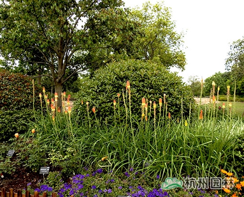 火炬花葉長(zhǎng)至二三十厘米即開(kāi)始下垂,但其花序長(zhǎng)可達(dá)80-100cm,在花境中常用作焦點(diǎn)或背景材料。