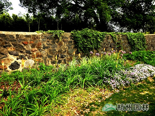 火炬花與地錦球形成墻垣花境的獨(dú)特風(fēng)景。