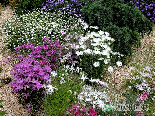 石竹、瞿麥在巖石園的應(yīng)用特寫(xiě)。