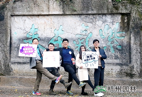 第二個(gè)任務(wù)點(diǎn)在紫氣東來(lái)石碑。大家在紫氣東來(lái)石碑前的平臺(tái)區(qū)域用“杭州園林”的元素進(jìn)行合影、點(diǎn)贊,即可蓋章過(guò)關(guān)。紫氣東來(lái)石碑是玉皇山的標(biāo)志性位置,大家在這里合影留念,成為“杭園小天使”,“為杭園打call”,玩的不亦樂(lè)乎。