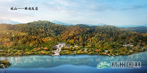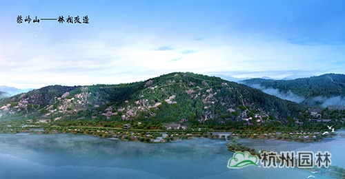 越王城山、老虎洞山、石巖山和柴嶺山為湘湖兩岸群山的四大主峰,依托層巒疊嶂之山勢,進行山林林相改造,營造錦繡湘湖之湖山景觀。