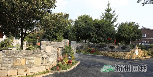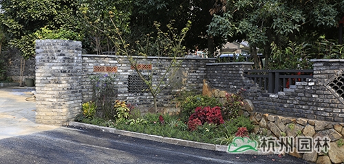錢(qián)三組共有31戶(hù)人家,以前,這里家家都是高墻大院,雖然每家的小樓都蓋得很有特色,但卻被高高的院墻擋住了院內(nèi)的風(fēng)光,而且整體綠化景觀單一,缺乏本土特色和文化氣息。如今,高高的圍墻被拆除,改為以舊青磚為主,搭配鋁合金欄桿,以老石板、舊瓦片、老石磨、老石鼓等作為點(diǎn)綴,懷舊物件與現(xiàn)代元素有機(jī)結(jié)合,營(yíng)造出全新的集古樸與時(shí)尚于一體的敞開(kāi)式景墻。在景墻內(nèi)側(cè)種植桂花、意大利絡(luò)石等綠籬,墻外地面種植麥冬等常綠草本植物;在每家庭院入口兩側(cè)和一些節(jié)點(diǎn)處設(shè)置小花境,種植各類(lèi)常綠、色葉、草花等植物,營(yíng)造出風(fēng)格多樣的花境景觀,在軟化景墻生硬感的同時(shí),景觀更加豐富多變。