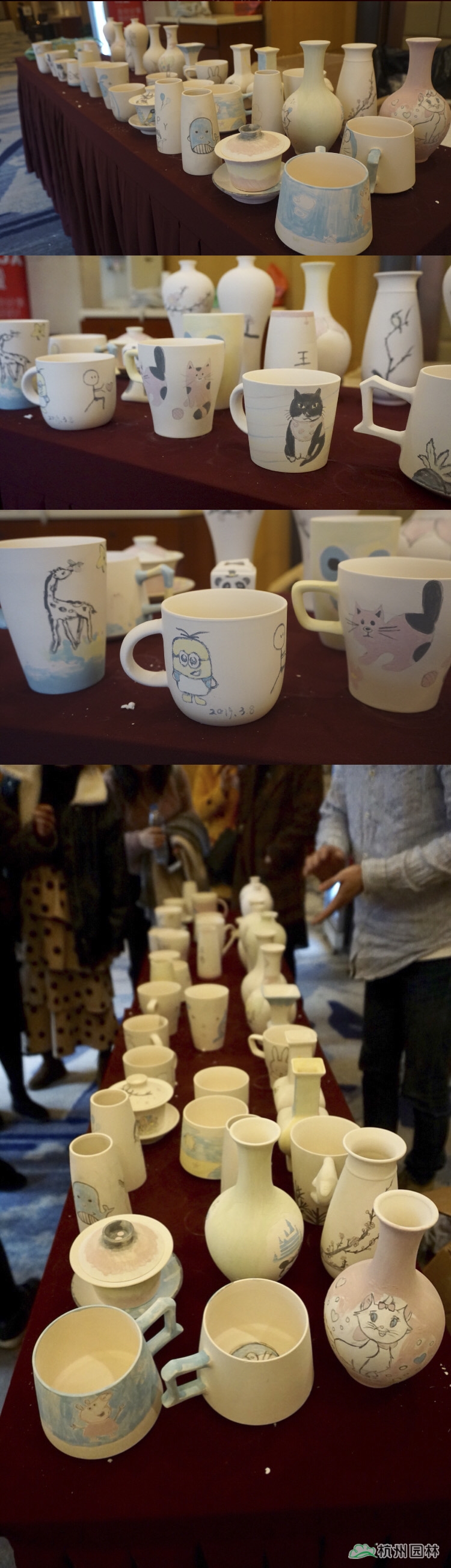 說(shuō)起陶藝,大家想到的肯定是雙手扶著轉(zhuǎn)盤上的陶泥,捏出形態(tài)各異作品的場(chǎng)景,但今天我們玩點(diǎn)不一樣的。素胚固然清爽,但少了色彩的點(diǎn)綴,總會(huì)覺(jué)得好像黑白電影略顯枯燥。是的,這次我們將畫(huà)紙搬到了這些瓶瓶罐罐之上。認(rèn)真的女人真的很美,一幅幅生動(dòng)的畫(huà)作在短短的一個(gè)多小時(shí)的時(shí)間里展現(xiàn)在了大家的眼前。有山水,有動(dòng)物,有卡通畫(huà),有說(shuō)要送給家中寶寶的,也有說(shuō)這代表了我們一家三口的。拿起畫(huà)筆的小仙女們,不再是那些個(gè)日常辦公室里的形象了,她們?cè)诮裉欤炎约旱目蓯?ài)、風(fēng)趣、溫婉、隨性等等面貌展現(xiàn)得淋漓盡致。
