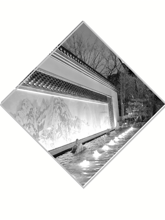 園區(qū)主入口,游人一進園,就能看到大瀑布和亭子,再加上富春山居圖造壁,呈現(xiàn)出浙江山水風景特點。浙江省地形復(fù)雜,其中三分之二的面積是山地丘陵,所以,浙江園也是依此而建的。為了能讓往來的游客在進園時就直觀的感受到這種景觀效果,盧山和團隊為游客們設(shè)計了兩條游覽線,一條從入口進來之后向山上走,體驗登高望遠,感受山林景觀的游覽過程;還有一條是從庭院路線走的,就是讓游客有行走在家宅的感覺。在設(shè)計時,盧山選取了明清時期的建筑形態(tài),粉墻黛瓦。建筑上層是黑的,墻是白的,展現(xiàn)出浙江傳統(tǒng)建筑的文化元素。盧山還說:“眾所周知,浙江的茶葉非常有名,我們在展園里打造成了一個茶山景觀,再配上一些花卉。總體上,是要展示出一個富美浙江主題的庭院。”