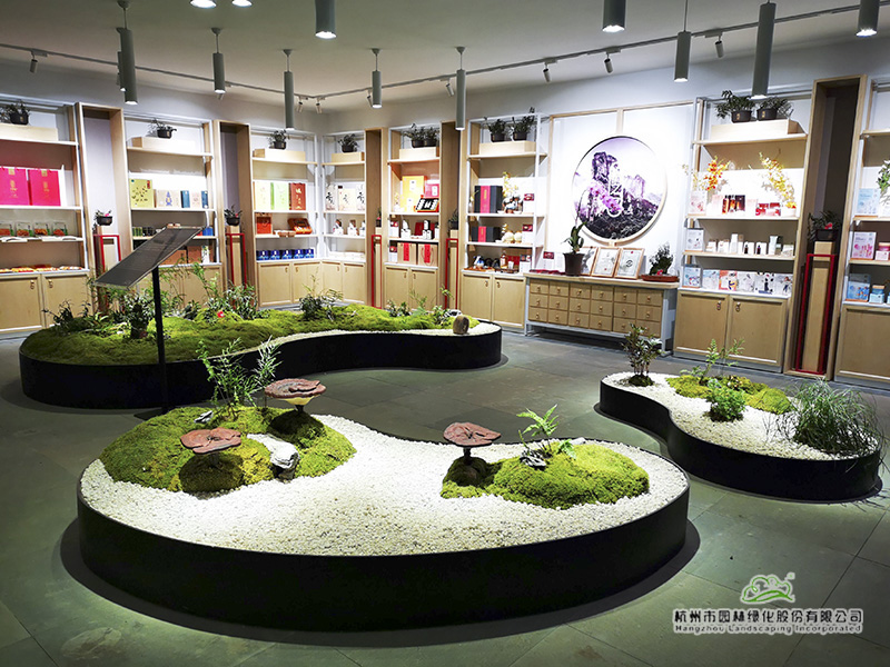 深化設(shè)計(jì)充分利用原始現(xiàn)場(chǎng)3米高差形成錯(cuò)層主體建筑,從入口進(jìn)入庭院觀建筑是一層,背面觀是兩層,負(fù)一層形成半地下室空間,形成了前庭后院的浙江美麗農(nóng)家院落。一層展廳由茶藝展示區(qū)、會(huì)客區(qū)、書房等組成,品茶、書法、閑談、小憩,展示愜意富美的浙江生活;負(fù)一層展廳則以產(chǎn)品陳列為主,主要展示浙江省前沿的室內(nèi)園藝品種,宣傳浙江最新的栽培技術(shù)與深加工產(chǎn)品等,讓園藝、生活有機(jī)融合。