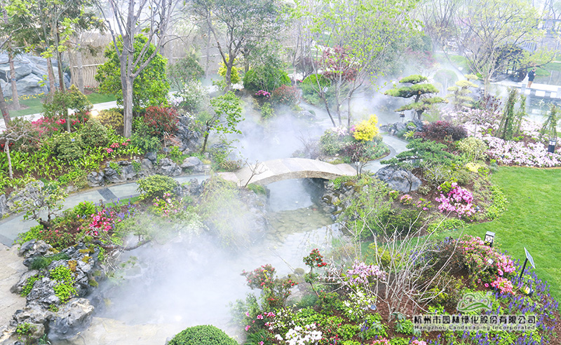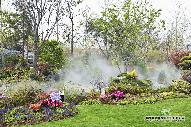 行走在浙江園,正在自動釋放的“霧森”,使植物變得更加清新潤澤,霧氣氤氳間,讓人仿佛置身煙雨江南,充滿夢幻感。