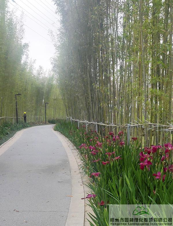 春天,鳶尾花開,為這條幽靜的竹林小道增添了無限生機(jī)