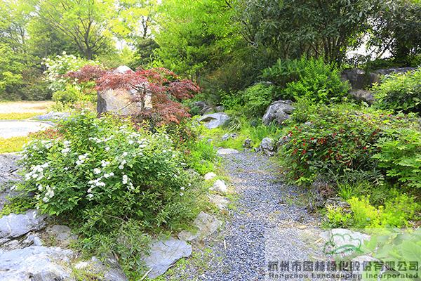除了以上這些表現(xiàn)搶眼的植物,花園中心還有風格庭院和組團花境樣本展示。風格庭院展示區(qū)由歐式田園庭院、西班牙風情庭院、巖石園、英式自然庭院、日式庭院、苔蘚園、現(xiàn)代中式庭院、自然中式庭院、東南亞風情庭院、自然水景區(qū)等10個景觀點組成。各具特色的它們,也在這個最美的季節(jié)展示出最美的風采。