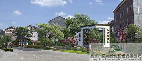 充分利用原有鄉(xiāng)土田野景觀,合理布置文化景觀節(jié)點,將畫水鎮(zhèn)打造成一派秀麗、生態(tài)的田園風光。整體景觀風格力求自然、生態(tài),并保持建筑、植物、景觀小品的和諧與統(tǒng)一。設計時,提煉許宅花燈制作、紅木等傳統(tǒng)元素,與景墻、小品相融合,進行演繹與表現(xiàn)。村鎮(zhèn)入口標識采用傳統(tǒng)東陽民居建筑形式進行演繹,展現(xiàn)淳樸風格。