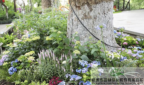 作為本次活動的贊助單位,杭州市園林綠化股份有限公司聯(lián)手繡球花產(chǎn)業(yè)國家創(chuàng)新聯(lián)盟,在城隍閣古樹平臺布置了《花落花開,年華度》為主題的八仙花景觀展示區(qū),“閣樓觀湖二十年,繡球花燈滿堂前”,通過代表浪漫與愛情之美的繡球花境組團,結(jié)合錯落有致的景觀挑燈和蜿蜒向前的時間軸序,營造出繁花如繡、前程似錦的美好寓意,以此向城隍閣開放20周年獻禮。
