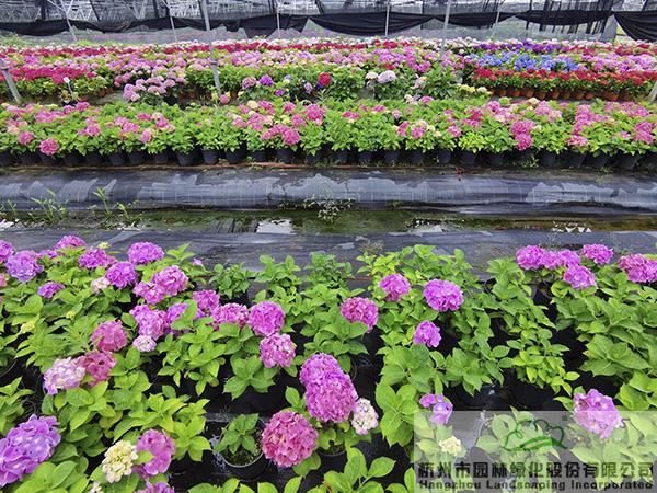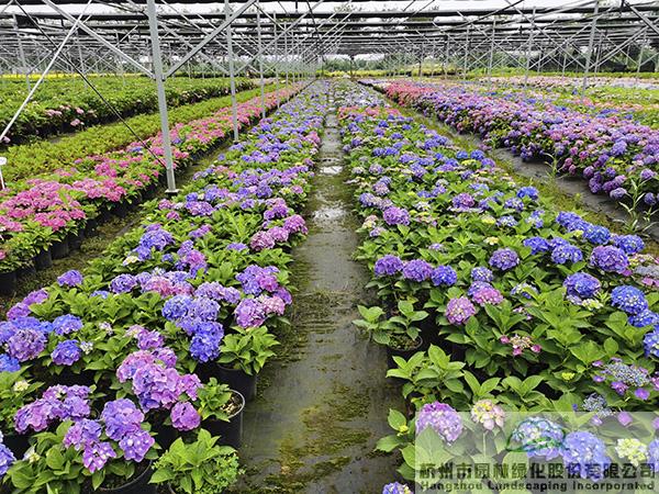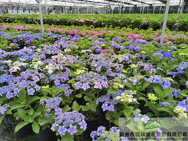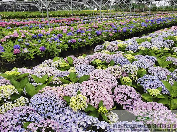 據(jù)悉,在畫(huà)境種業(yè)徑山基地,共有七八十個(gè)繡球品種,規(guī)格從1加侖到5加侖,能夠滿足家庭園藝和工程用苗的多種需求。通過(guò)近幾年的生產(chǎn)和繁育,徑山基地不斷篩選優(yōu)良的繡球品種,目前,基地里的這些品種表現(xiàn)都比較好,比如紅色系的搖擺樂(lè)、漢堡、花神,花色紅艷,花朵碩大,在一眾繡球中表現(xiàn)非常搶眼;花色豐富多變、宛如一顆顆璀璨寶石的藍(lán)寶石和藍(lán)色媽媽;花朵宛如蝴蝶翩躚、花色充滿夢(mèng)幻感的佳澄;花朵密集、猶如一大捧五顏六色爆米花的愛(ài)莎;開(kāi)花早、花期長(zhǎng)、花色漸變的藍(lán)色海洋;花開(kāi)時(shí),宛如一只只白色小鳥(niǎo)在枝頭紛飛的泉鳥(niǎo);花團(tuán)錦簇、花期超長(zhǎng)的無(wú)盡夏……可以說(shuō),每一種繡球的花色、花形都各不相同,極具特色,充滿了夏日的浪漫情懷。