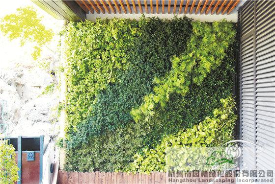 位于展園富春山居負一層門口右側的垂直綠墻,選用小葉梔子、龜甲冬青、黃金海岸線柏、火焰南天竹、哈伯南天竹、常春藤、吊蘭等植物,以“絲”為筆,用流暢的線條勾勒出浙江絲綢之美,體現(xiàn)浙江絲綢之韻,描繪出一幅柔軟飄逸的浙江絲綢之畫。