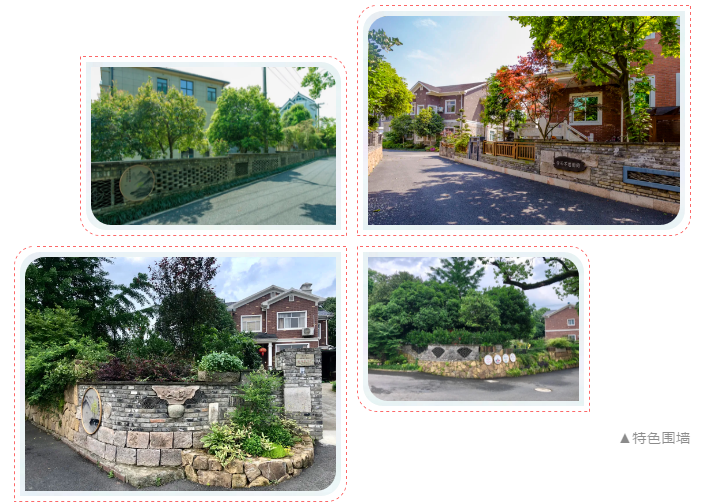 在進(jìn)行景墻施工時(shí),根據(jù)每家的房屋建筑特色選擇了不同的材料和植物配置手法。比如,建筑外立面為紅色的,景墻以紅色磚為主,搭配月季、佛甲草等植物;建筑外立面為灰色的,景墻以淺黃色磚為主,結(jié)合小木樁或仿竹籬笆,搭配石竹、美女櫻等植物;建筑外立面有大理石點(diǎn)綴的,景墻以桐廬石為主,輔以裝飾過的輪胎,點(diǎn)綴佛甲草、常春藤等植物。不同的處理手法,使得家家戶戶的景墻既有連續(xù)性,又有各自的風(fēng)格。