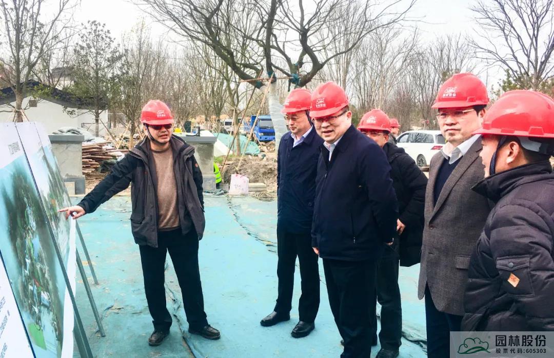 ▲胡俠(中)一行實(shí)地察看浙江室外展園施工進(jìn)展情況