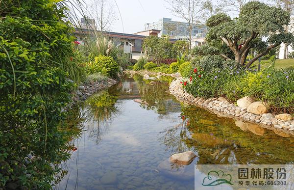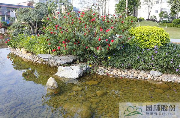 融入海綿城市理念打造的旱溪景觀,用鵝卵石鋪裝,點綴景石,岸邊種植造型水蠟、楊梅、蘆葦、蒲草、三角梅、黃金葉、黃金榕、朱蕉、扶?;?、變?nèi)~木、紅千層等當?shù)剜l(xiāng)土植物,打造生態(tài)環(huán)保的地域特色景觀風(fēng)貌。