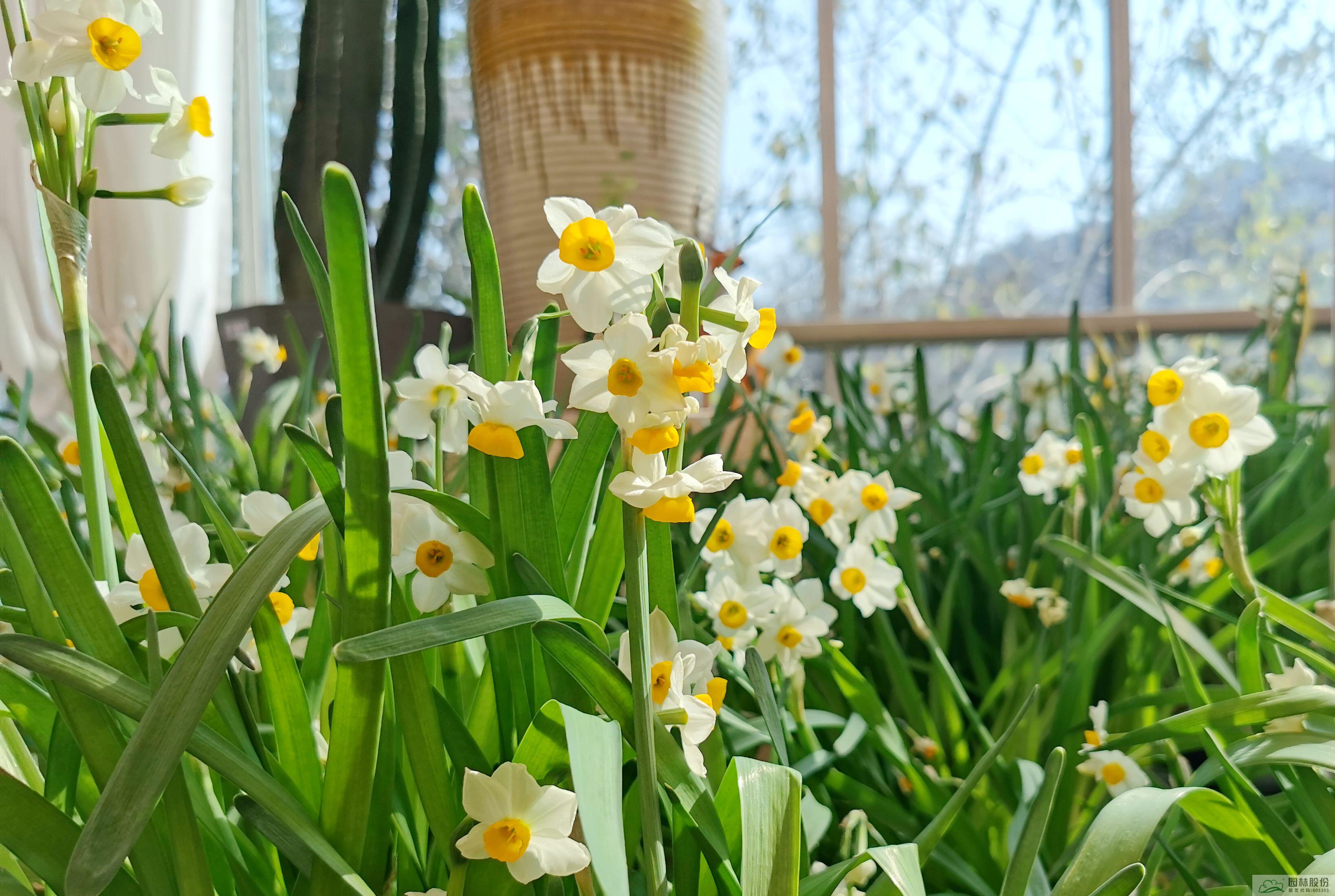 碧葉翠綠,綠的發(fā)光,花兒如白玉一般,清香高雅的水仙