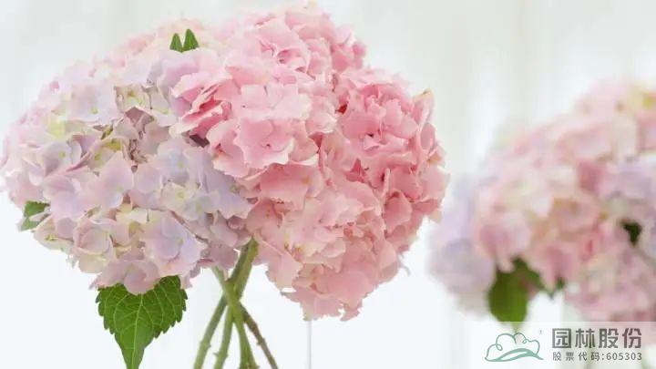 ▲園林股份自主選育的繡球‘落塵’(左)與‘紫之夢(mèng)’(右)