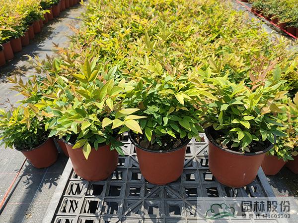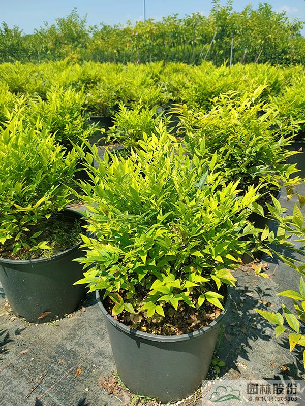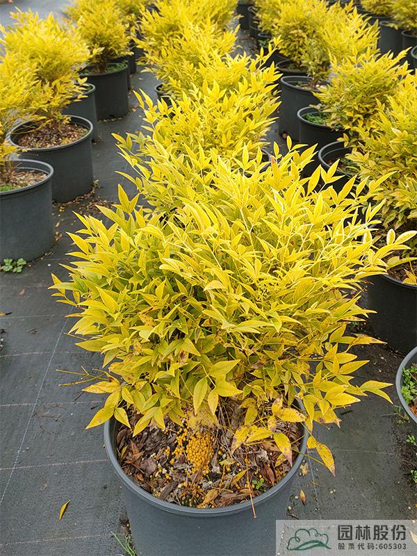 相較于其他南天竹品種,檸檬黃南天竹是少見的金黃色系品種,四季均能保持一個(gè)相當(dāng)亮眼的狀態(tài)。低矮飽滿的冠型與密集斜展的金葉,明顯區(qū)別于其他金色系植物品種。