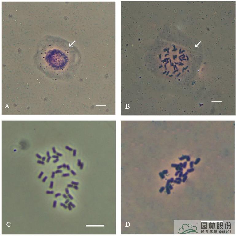 繡球聯(lián)盟理事長單位杭州市園林綠化股份有限公司(浙江園林資源與環(huán)境技術(shù)研究院)與南京林業(yè)大學(xué)(林木遺傳與生物技術(shù)教育部重點(diǎn)實(shí)驗(yàn)室),聯(lián)合開展繡球染色體制作和定位研究,并成功建立繡球‘無盡夏’根尖高質(zhì)量中期染色體制備及rDNA物理定位技術(shù)體系,這一體系可高效確定繡球?qū)僦参锏娜旧w數(shù)目及rDNA的分布,可為繡球?qū)儋Y源鑒定、雜交育種的親本選配提供參考,從而指導(dǎo)繡球?qū)僦参锏碾s交育種實(shí)踐。本研究在國家自然科學(xué)基金項(xiàng)目( 31670603)、上海市綠化和市容管理局科研項(xiàng)目( G212410)、上海市科學(xué)技術(shù)委員會(huì)科研項(xiàng)目 (19DZ1203503)等項(xiàng)目的資助下完成。研究成果論文已在《林業(yè)科學(xué)》2021年第57卷11期雜志發(fā)表。