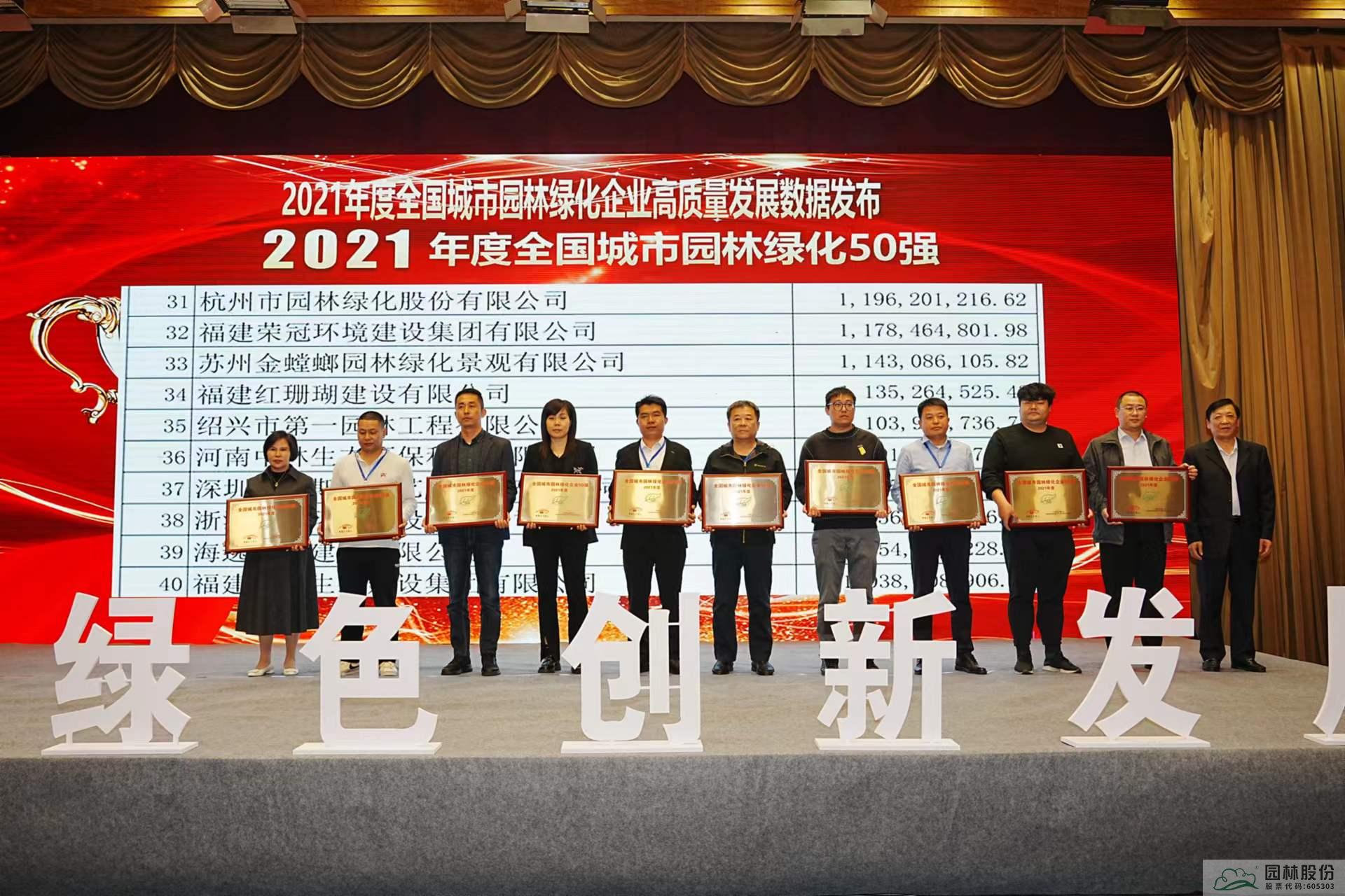 4月26日,2023園林產(chǎn)業(yè)高質(zhì)量發(fā)展論壇暨2021年度全國城市園林綠化企業(yè)50強峰會在山東泰安隆重召開,杭州市園林綠化股份有限公司連續(xù)多年榜上有名,本年度排名全國前31名。