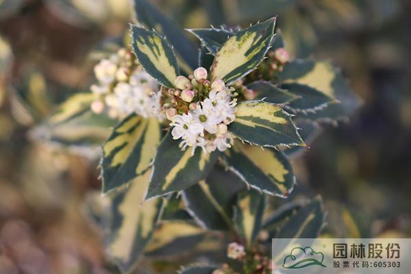 其中,彩葉冬青更是其中的佼佼者。除了果實可供觀賞外,它們還擁有黃色葉、藍綠色葉和銀邊葉等彩色葉片。葉形變異也是相當豐富,具四角狀,橢圓形,倒卵形等多種形狀;有些品種具有刺狀葉片,而有些則是光滑的葉片;有些品種葉緣還具有波浪狀的起伏。四季景觀分明,在春季,它們的莖腋間會簇生出一朵朵清新可愛的小花;而在當年生的枝條上,則會抽出亮麗的嫩葉。到了秋季,隨著氣溫的驟降,葉色會變得更加地明艷;冬季的時候,在雌性的植株枝條上,則會掛滿累累的果實。這些不同的形態(tài)和色彩變化,使得彩葉冬青在不同的時間和空間中呈現出不同的姿態(tài)、色彩與意境,從而提升了冬青品種的觀賞價值,成為園林景觀中重要的觀葉植物。