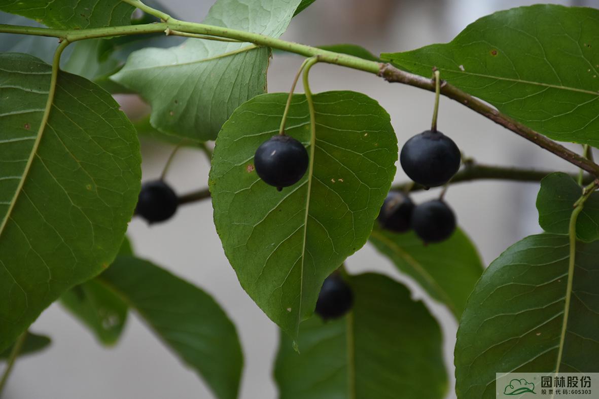 大果冬青:落葉喬木,樹體高大,分枝點高。葉片紙質至堅紙質,卵形或卵狀橢圓形?;ò咨揖叩南銡?。果成熟時黑色,球形。四季景觀分明,隨時間和空間變化呈現不同的姿態(tài),色彩和意境,常在園林景觀中孤植。