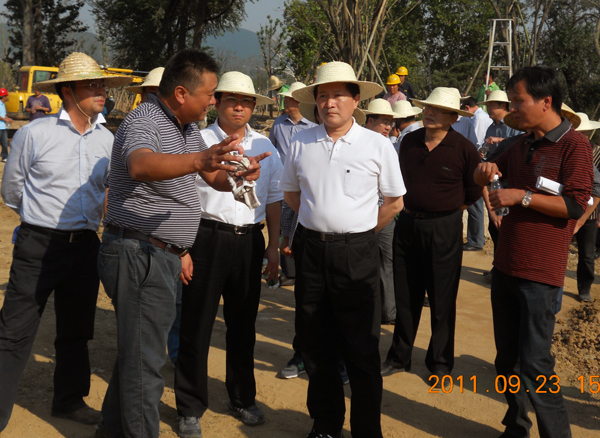 9月23日上午,徐州市委書記曹新平和副市長王昊、市政園林局局長李云峴等一行,來到云龍湖珠山景區(qū)景觀綠化工程施工現(xiàn)場視察,杭州市園林綠化工程有限公司常務(wù)副總李壽仁、營銷副總陳伯翔、徐州分公司總經(jīng)理王世新、項目技術(shù)負責(zé)人來永川、徐中明等前往陪同。