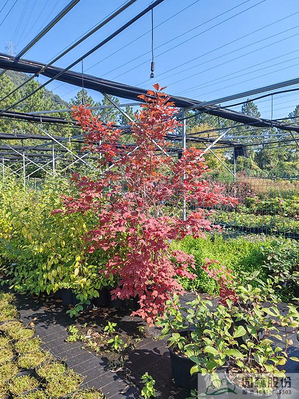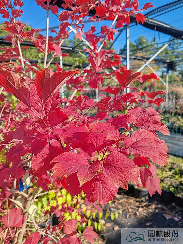 忍冬科莢蒾屬,叢生性落葉灌木,高可達4米?;ò咨?,花期4-5月,果大而紅,觀果期長,可從7月持續(xù)到10月。葉掌狀,通常三裂,秋季一般9-10月葉色開始轉紅,11月達到最佳效果。歐洲莢蒾是莢蒾屬中秋色葉效果較好的一個種類,紅葉期來得比較早,且葉色最為鮮艷。該種病蟲害少,適應性強,耐寒,北方室外能正常生長。生長速度快,適合工程應用或庭院觀賞。
