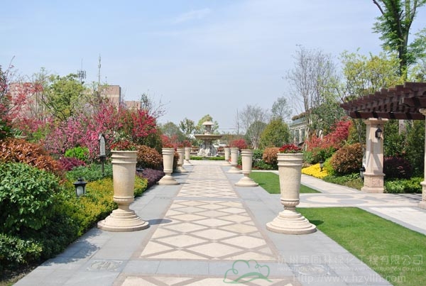 中國鐵建?國際城(杭州)示范區(qū)園林綠化工程位于杭州城北石祥路與蔡馬河交匯處,面積相當(dāng)于三個(gè)足球場大小,景觀全方位采用規(guī)則式與自然式融合的維多利亞園林風(fēng)格,整個(gè)樣板區(qū)里,低矮的植物構(gòu)筑、種類豐富的四季花壇堆砌、自然風(fēng)格的花境布局、工藝繁復(fù)的石材雕刻、優(yōu)雅的雕花鐵藝運(yùn)用、材料豐富的硬質(zhì)鋪裝、蒼勁古樸的大樹……無不各具特色,自然和諧地融為一體,純凈、自然中透露著大氣、華貴,將維多利亞皇家園林景觀的特征表現(xiàn)得淋漓盡致,引發(fā)了人們對未來?xiàng)又鼐坝^的無限憧憬,成為住宅景觀的優(yōu)秀典范。
