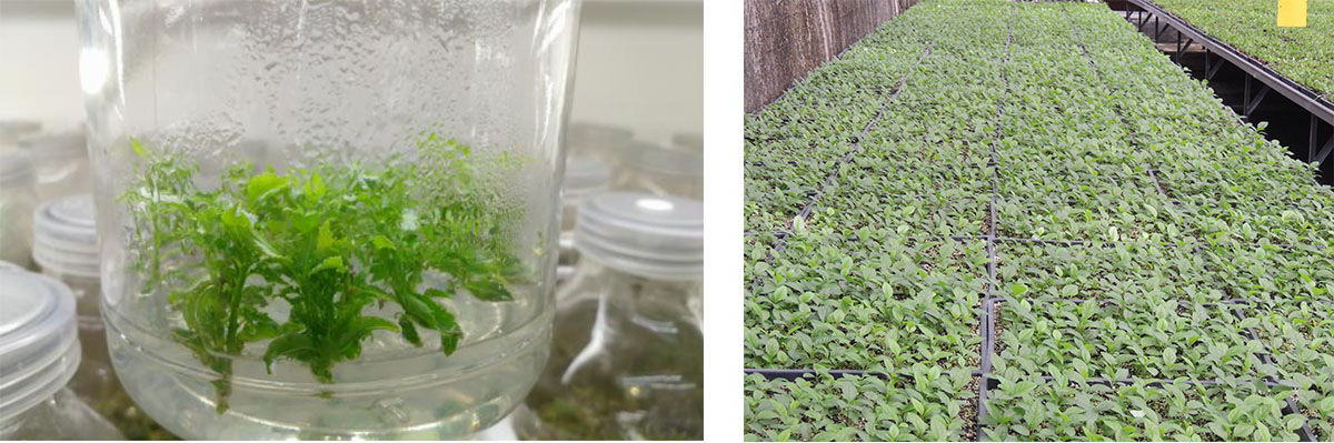 研發(fā)中心擁有1200㎡組培研發(fā)及生產(chǎn)車(chē)間,年產(chǎn)組培種苗500萬(wàn)株。經(jīng)過(guò)多年的研發(fā),建立了南天竹屬、冬青屬、礬根屬、紫金牛屬、繡球?qū)佟褜俚榷喾N植物組培快繁技術(shù)體系,在木本植物組培快繁技術(shù)方面處于國(guó)內(nèi)領(lǐng)先水平。