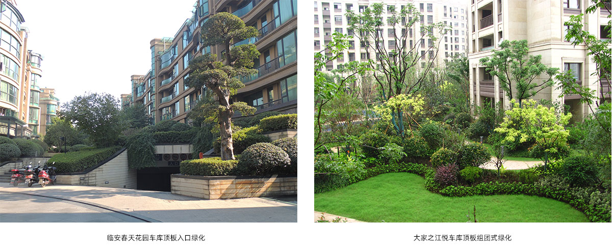 利用梁柱、承重墻等結(jié)構(gòu)的設置,增加頂板覆土厚度,提高植物群落復雜程度,豐富景觀多樣性。并通過排水系統(tǒng)、輕型基質(zhì)、花箱等種植方式的利用,建立形式多樣、種類豐富的頂板結(jié)構(gòu)景觀模式。